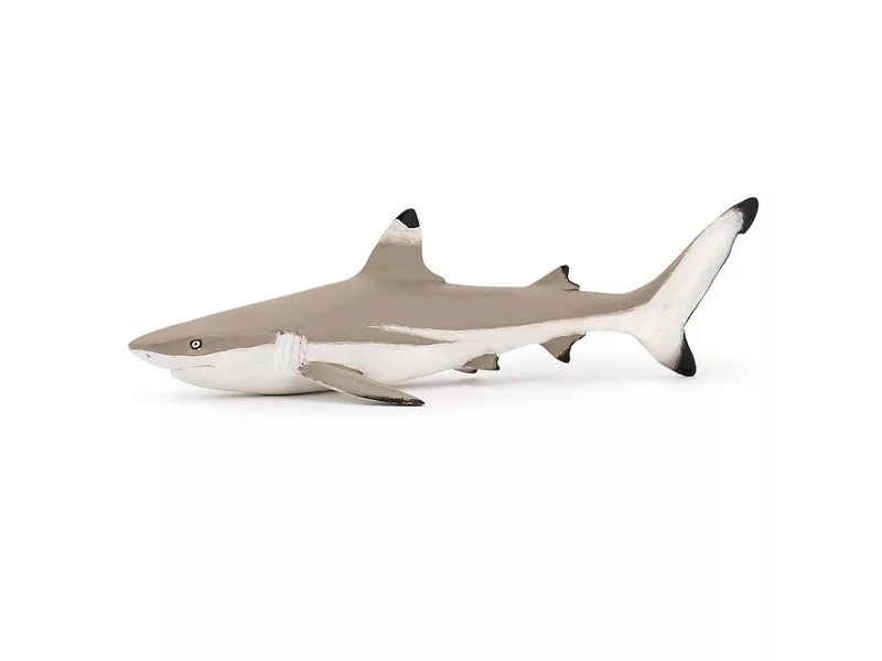 Nagyobb testű cápafigura, fekete szegélyű úszókkal! A Papo feketeúszójú szirti cápa 56034 egy szürke testű, fehér pocakú ragadozó hal, ami az óceánokban, tengerekben őshonos. A cápa műanyagból készült, kézzel van festve, a Papo feketeúszójú szirti cápa 56034 együtt használható Papo tengeri élőlényekkel és játékkészletekkel is. A cápa méretei: 15 x 7 x 4 cm.