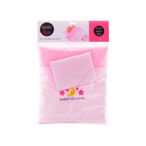 Segíts a játékbabának pihenni, párnával és takaróval! A Baba párna és paplan készletben egy Sweet Dreams feliratú, pöttyös mintájú pici párnát és egy vastag paplant találsz, amik segítenek kedvenc játékbabádnak elaludni.