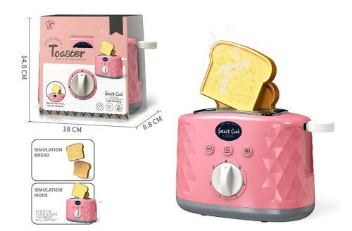 Kenyérpirító a kis háziasszonyoknak. Ezzel a fantasztikus darabbal a gyerekek pillanatok alatt finom pirítóst készíthetnek babáiknak, barátaiknak, vendégeiknek. Az imádnivaló élénk pink színben pompázó kenyérpirító megszólalásig hasonlít egy valódi, mini kenyérpirítóra és még a működése is egy igazi kenyérpirítóra hajaz. Csak lenyomjuk az oldalsó kart, várunk kicsit, és már ugrik is kifele kenyérpirítónkból a friss reggeli.
