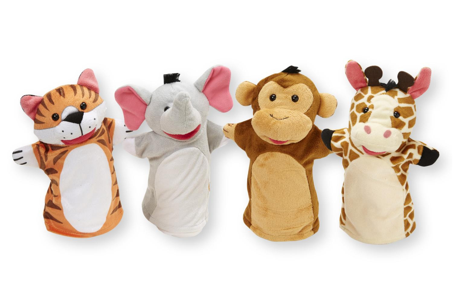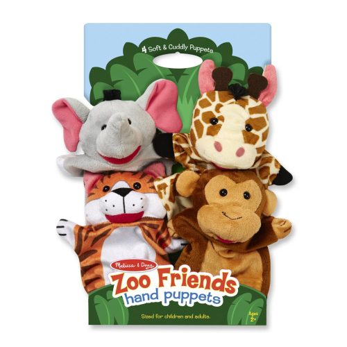 A Melissa & Doug Bábjátékok, Vadállatok négy darabos szett egy állatkerti állatokat formázó kesztyűbáb készlet, ami kiváló szórakozást nyújt gyermek, testvérek és anyuka számára egyaránt. Közösen alkothatnak történeteket, melyben mindenki aktívan részt vehet saját bábúival, de a gyerekek akár egyedül is játszhatnak, beszélgethetnek új barátaikkal.