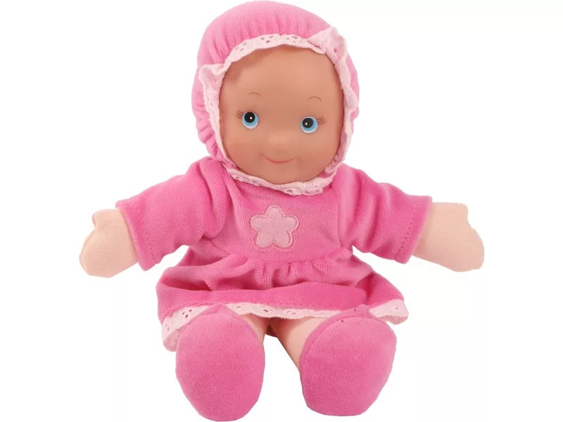 Ölelgesd a My First Baby puha babát, aludj el mellette! A My First Baby puha baba feje műanyagból készült, viszont minden más testrésze puha plüssel van borítva. A baba egy divatos rózsaszín ruhát hord kapucnival a baba pocakja babzsákkal van töltve. A My First Baby puha baba együtt használható minden Dolls World készlettel is.