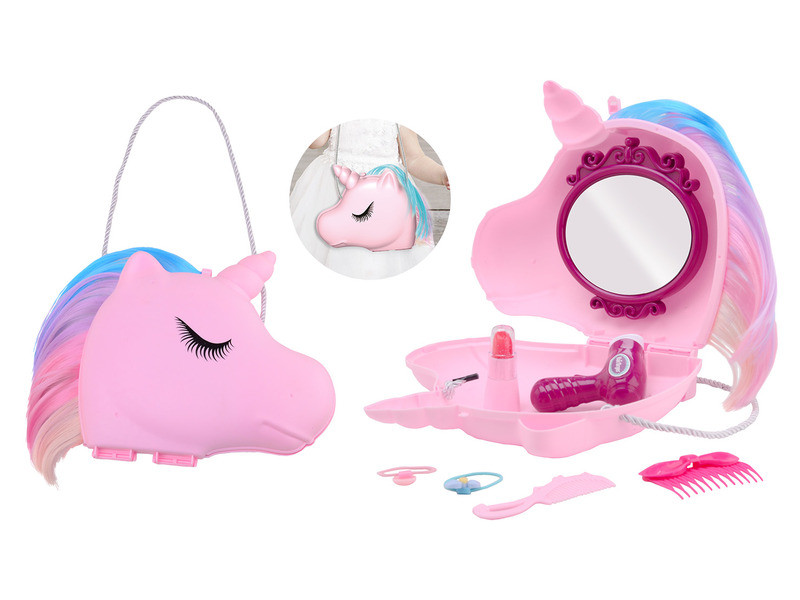 Saját szépségszalont szeretnél? Vagy a tükör előtt akarsz tündökölni? Ez a jól felszerelt unikornis szépségtáska mindent tartalmaz, amire szükséged lehet hozzá. A készlethez tartozik hajszárító, rúzs és még sok más kiegészítő. A praktikus vállpántnak köszönhetően bárhová magaddal viheted a játékot.