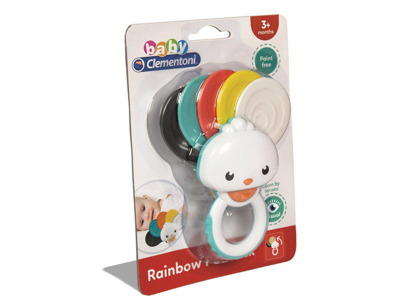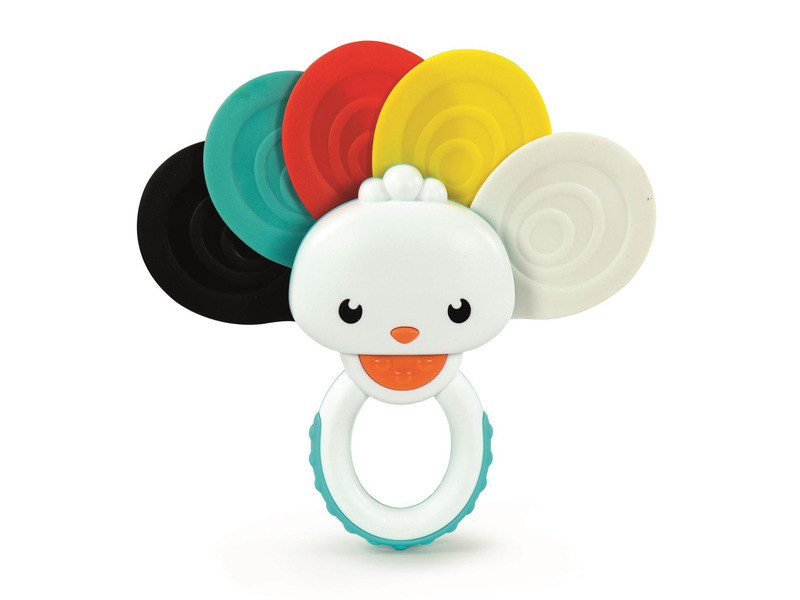 Ha egy igazán tündéri és szórakoztató játékot szeretnénk a kisbabánknak, akkor keresve se találhatnánk jobbat ennél a pávát formázó csörgőnél. A pávás bébi csörgőn található színes tollak mozgathatóak. A csörgő hangot ad ki játék közben, mely további aktivitásra ösztönzi a gyermeket. A csörgő fogó része gumival van bevonva, így mind a fogásnál, mind a rágásnál kényelmes lesz majd a gyereknek.