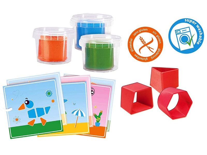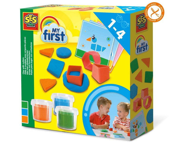 Fedezd fel a formák világát színes gyurmákkal! A SES Első gyurmám kinyomókkal készlet színes gyurmát, valamint különböző formájú gyurmakinyomókat tartalmaz, amikkel a gyerekek megismerhetik a fontosabb formákat, a háromszöget, a négyzetet, a kört, vagy épp a hatszöget. A gyurmák élénk színűen, egészségre ártalmas anyagot és glutént nem tartalmaznak.