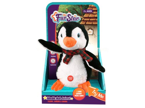 Finom puha plüss anyagú visszabeszélő pingvin. Mondj a pingvinnek valamit, vagy énekelj neki, s Ő visszamondja vagy énekli Neked. A pingvint viheted magaddal mindenhova, vagy akár a szobádba is hű Társad lehet.