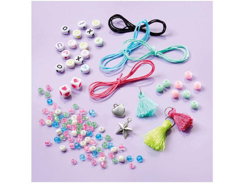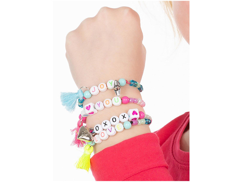 Kreatív karkötő készítő készlet, melyben rengeteg betűs gyöngy és több medál is helyet kapott, így akár 4 névre szóló, szavakkal díszített karkötő is elkészíthető belőlük. Egyedi karkötőket készíthetsz, amelyekre mindenki féltékeny lesz!
