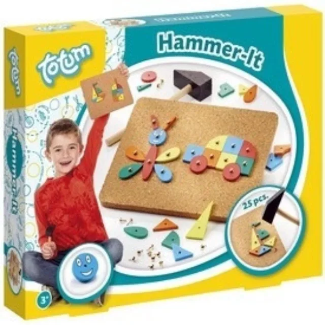 Alkoss nagyszerű képeket kalapácsos játékoddal! A Kalapács játékkészlet kellemes kikapcsolódás lesz, minden kreatív alkotó számára. Használd a játékhoz tartozó leírást és alkosd meg a képeken látott rajzokat, a formák segítségével. A feladathoz nem lesz másra szükséged, mint a készletben mellékelt eszközökre. Fogd meg a parafatáblát, illeszd rá a kiválasztott elemeket, majd rögzítsd rá a kapocs és a fakalapács segítségével. Ütögesd rá finoman a táblára az anyagokat és állítsd össze a csodálatos képeket. Nagyszerű foglalatosság lehet a játék, akár egy esős nap alkalmával is. Készíts akár új képeket fantáziád segítségével és nyűgözz le mindenkit alkotásaiddal. Egy fejlesztő játék, ahol a kis művészek felfedezhetik a bennük rejlő kreatív szellemet.