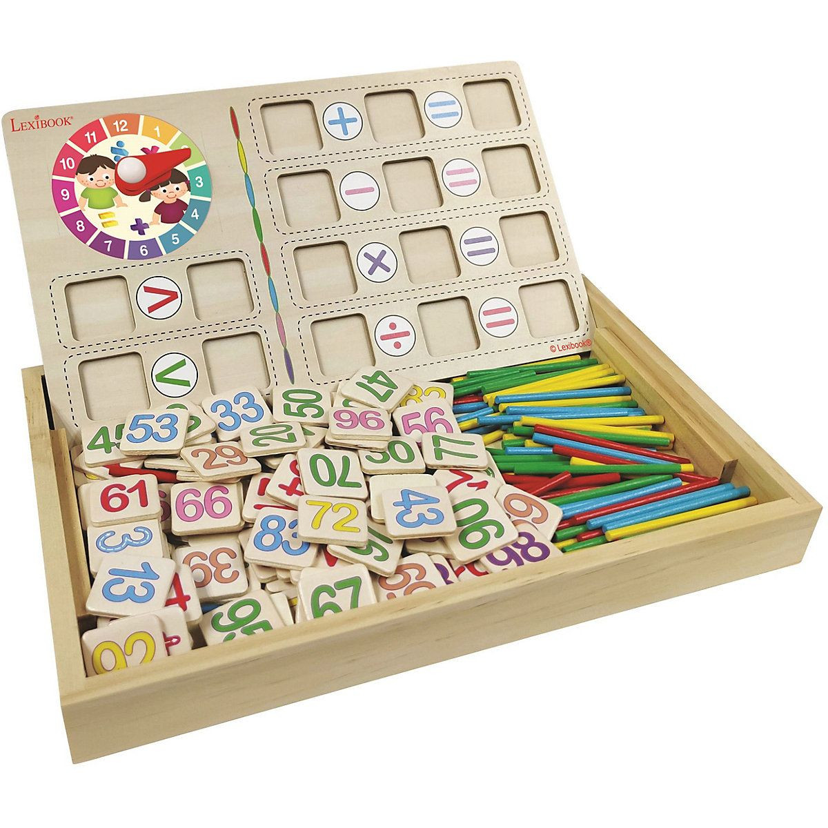 Rajztábla fadobozban, a matematikai műveletek megtanulásához színes krétákkal, radírral és pálcikákkal. A termék doboz mérete: 28,5 x 3,5 x 18 cm. A játékot 3 éves kortól ajánljuk. A játékra 2 év gyártói garancia biztosított.