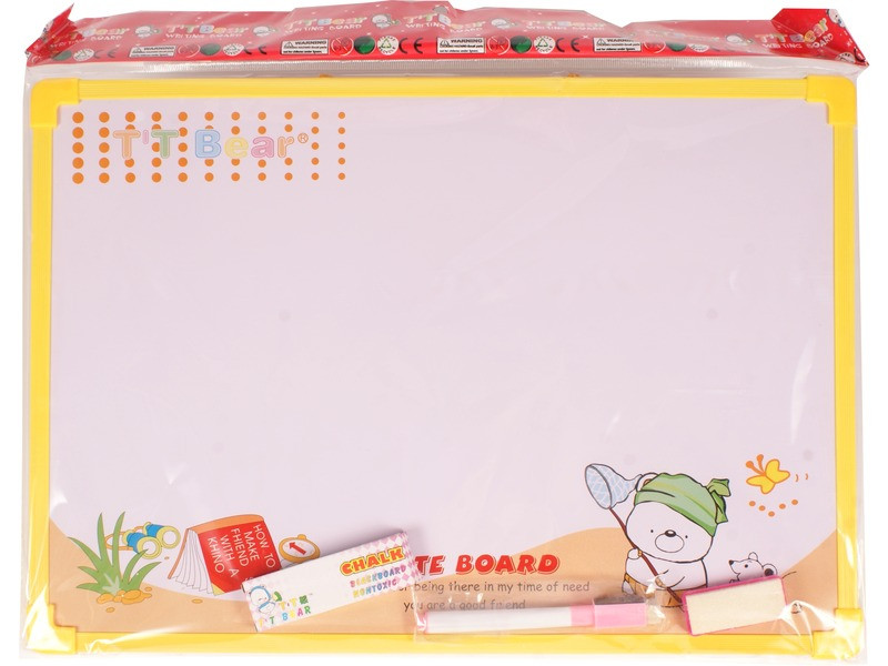 Rajzolj, firkálj, hagyj üzenetet a sárga kétoldalas rajztáblán! A mágneses kétoldalas rajztáblára fel tudod írni a legfontosabb teendőket, vagy kedvedre tudsz írni, rajzolni. A tábla mágnesezhető, mágneses betűkkel és számokkal is ki tudod egészíteni a rajzodat. A táblát fel tudod akasztani. A tábla fehér oldalára filctollakkal, a feketére krétával tudsz írni, a készlet két krétát, egy szivacsot és egy filctollat is tartalmaz. Tábla méretei: 40 x 28 cm.