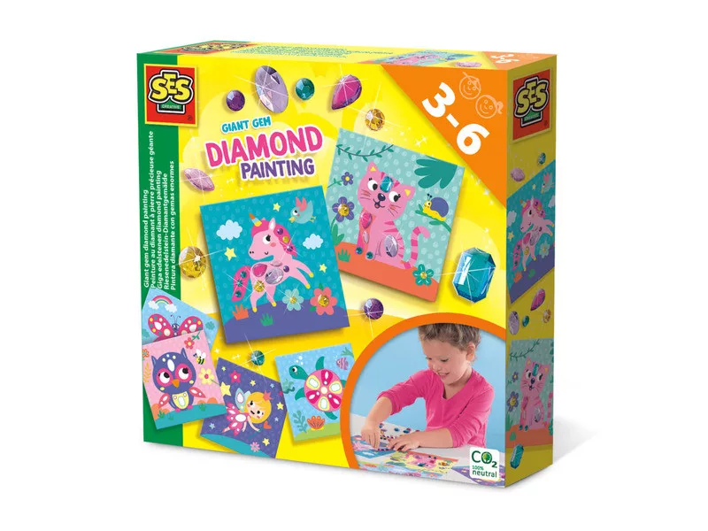 Gyémántfestés, most a kicsiknek is! Ezzel a fantasztikus Óriás drágakő gyémántfestő készlettel gyönyörű gyémántfestményeket készíthet. Az extra nagy kövek öntapadósak és hat fényes kártyára ragaszthatók. Először egy káprázatos teknőst vagy egy varázslatos egyszarvút készítesz?