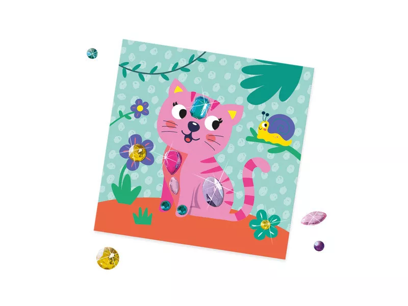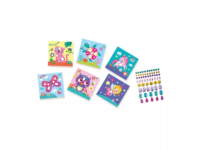 Tartalma: 6 kártyalap, 65 db öntapadós óriás drágakő.