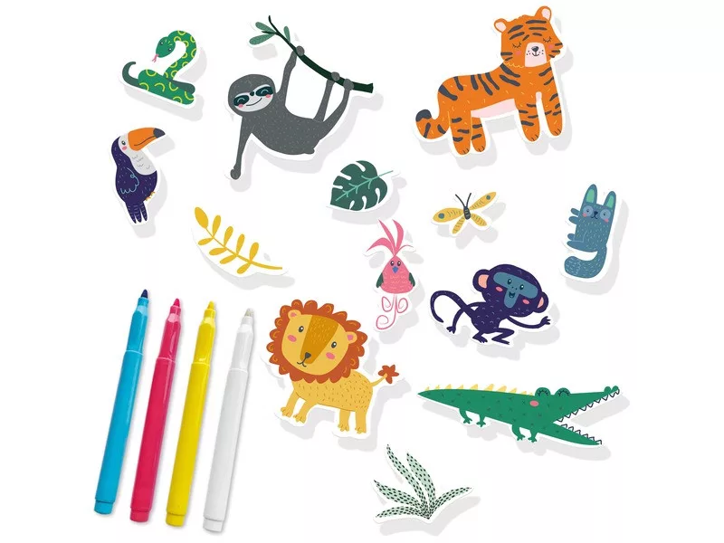 Dekoráld ki ablakodat vidám matricákkal és rajzokkal! A SES Ablakmatrica – Dzsungel készlettel most igazi élővilágot tudsz ablakodra varázsolni! A színes ablakmatricák különböző állatokat ábrázolnak. Ragaszd fel tigrist, oroszlánt, kígyót és a többieket szobád ablakára, és az üvegre való filctollak segítségével egészítsd ki a rajzot! Kellemes időtöltés lehet ablakod díszítése, miközben új külsőt nyer szobád is a matricáknak köszönhetően. Engedd előtörni a benned lévő kreatív énedet, és készíts egy fantasztikus dzsungeles történetet ablakodra. A mókás állatos matricák percek alatt be fogják lopni magukat szívedbe. A készlet tökéletes választás lehet minden állatrajongó számára, hiszen a kollekció több mint négyféle élőlényt is tartalmaz. A filceket kifejezetten az ablakok feldíszítésére tervezték, így nem kell attól tartanod, hogy rajzod elmosódik az idő elteltével. A készlet tartalmazza az ablakmatrica gyűjteményt és 4 db színes filctollat.