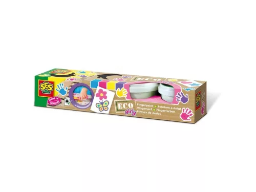 Környezetbarát anyagokból készült ujjfesték, lányos színekben! A SES ECO ujjfesték lányoknak készletben egy tégely világoskék, rózsaszín, sárga és lila színű, sűrű ujjfestéket találsz, amivel már egész kicsiként is készíthetsz művészeti alkotásokat. Csak mártsd az ujjaidat a festékbe, és húzd végig a papíron, az ujjfesték élénk színű nyomot fog hagyni a lapon. Az ujjfestékkel pólómintákat is készíthetsz, és ha összekened magad, semmi gond, az ujjfesték a ruhából is könnyen kimosható, illetve az ujjaidról is biztonságosan lejön. Az ECO ujjfesték lányoknak készlet 4 x 110 ml festéket tartalmaz. Csomagolás méretei: 28 x 7 x 5 cm.