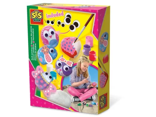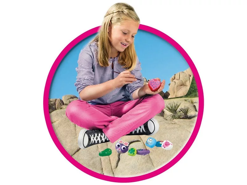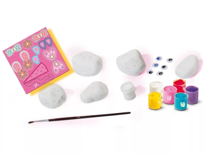 Fesd ki a kavicsokat, készíts belőlük különböző állatokat! A SES Kavics díszítő készlet maroknyi méretű köveket tartalmaz, amiket festékekkel, és mozgó vicces szemekkel tudsz állatokká alakítani. Ragadd meg az ecsetet, kend fel a színes lakkokat, és miután megszáradt, még a szemeket is rá tudod tenni a kavicsra, így lesz belőle katicabogár, cica, vagy épp nyuszi. A köveket matricákkal tudod még érdekesebbé, egyedibbé tenni.