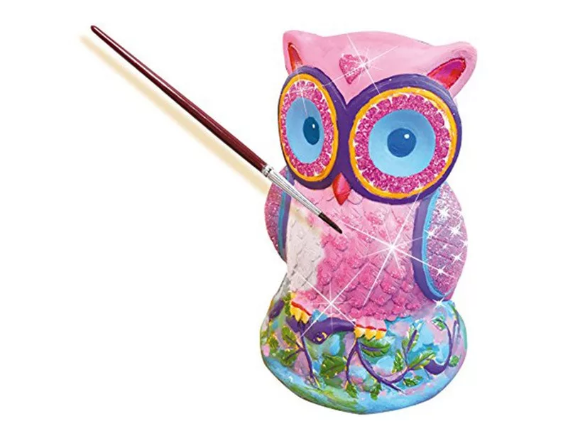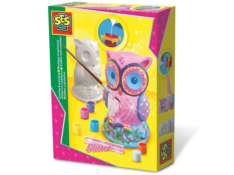 Alkoss meg egy színes, ragyogó bagoly szobrot! A SES Bagoly csillámos gipszöntő készlettel egy színes, nagy szemű bagoly figuráját tudod elkészíteni, modellgipszből. A gipszet tejföl sűrűségűre kell keverni vízzel, ezután csak öntsd az öntőformába, és hagyd száradni kb. egy napig. Ha teljesen kiszáradt a gipsz, a színes festékekkel, csillámmal tudod egyedivé és varázslatossá tenni a madarat!