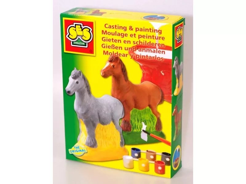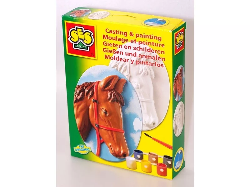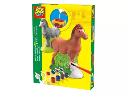 Készíts lovas szobrokat, majd fesd ki őket! A SES Lovacska 3D gipszkiöntő készlettel ló formájú szobrokat tudsz készíteni, amiket utána még színes festékekkel is ki tudsz dekorálni. Először önts vizet az öntőformába, majd szórd bele a gipszet, rázd össze, és legalább 3 órán keresztül hagyd kötni. 3 óra elteltével kend be szappanos vízzel a formát, majd húzd le róla, a szobrot további 24 órán keresztül hagyni kell száradni. Végül már csak fogd a színes festékeket, és kend be a szobrokat tetszés szerint!