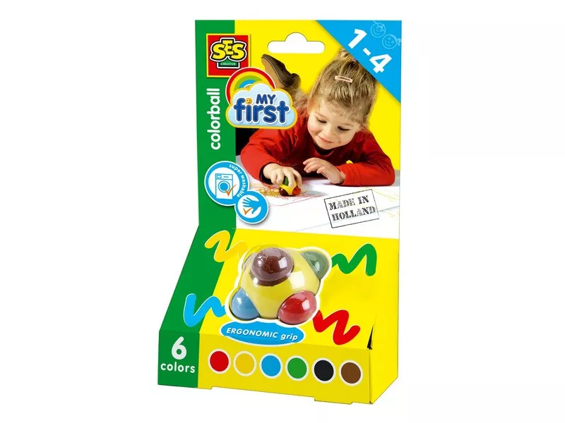 Színezz egyszerre több színnel a különleges zsírkrétával! A SES Színező gömb zsírkréta egy különleges golyó, amiből hat irányban más és más színű zsírkréták állnak ki. A krétákkal rajzolhatsz, színezhetsz, egyszerre több vonalat is tudsz vele húzni. A Színező gömb zsírkréta a ruhából könnyen kimosható anyagból készült, ezért nem okoz gondot, ha a gyerek összekeni vele a ruháját. A Színező gömb zsírkréta átmérője: 6 cm.