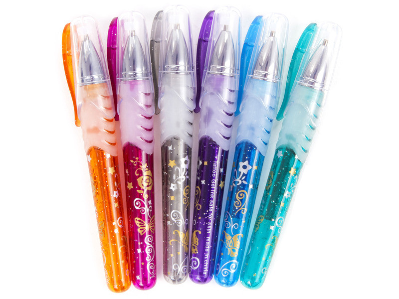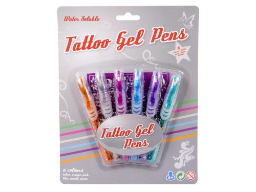 Rajzoljatok magatokra változatos mintákat! A Tetováló toll 6 darabos készlet különleges zselés tollakat rejt magában, amikkel a bőrre is lehet rajzolni. A tollak tintája vízben oldódó festékből készült, amikkel változatos ideiglenes tetoválásokat lehet rajzolni. A Tetováló toll 6 darabos készlettel készült tetoválások vízzel könnyedénn lemoshatók.