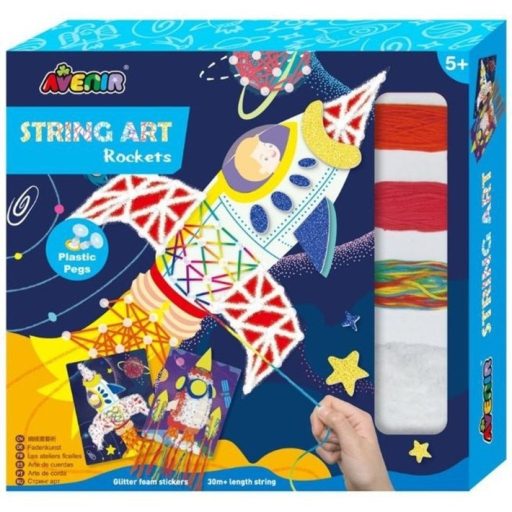 Készíts űrhajós képeket az Avenir fonalkép készítő készlettel! Óvatosan tekerd fel a színes fonalakat a megfelelő szegek köré és díszítsd a képeket tovább polifoam matricákkal! A műanyag szegek éles hegyek nélkül illeszkednek a táblába.
