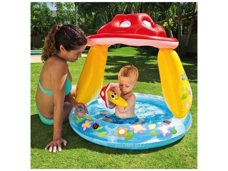 Már a legkisebb gyerkőcök is élvezhetik nyáron a hűsítő, szórakoztató pancsolást! A Gomba kupolás bébimedence árnyékolóval van felszerelve, PVC-ből készült, amiben már a legkisebb gyermekek is hűsölhetnek, pancsolhatnak. A gomba mintás árnyékoló tökéletesen megvédi a kicsiket a káros UV sugaraktól. A medencét felfújni biztonsági szelepen keresztül lehet, és vízzel megtölteni pedig kerti tömlőről lehetséges.