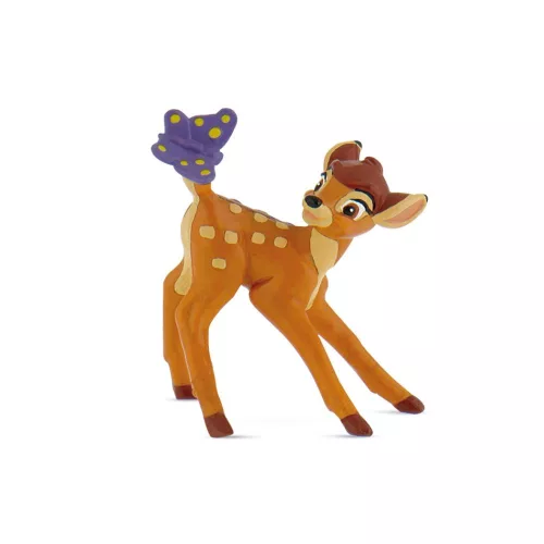 A Bullyland 7,4 cm-es figurája a kedves őzgidát, Bambit ábrázolja, amint egy kedves kis pillangóval játszik.